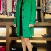 Abrigo de paño, de manga larga con travillas y botón. Cierre delantero con botones a contraste. Largo midi. Cuello mao.