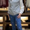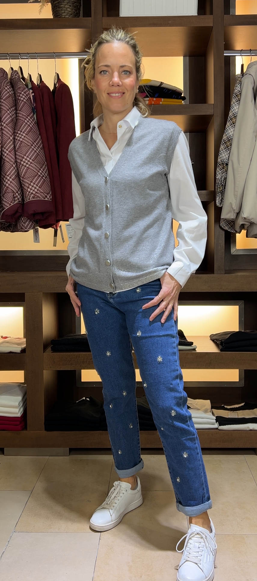 Vaquero de corte recto con tejido elástico que se adapta cómodamente al cuerpo. Detalles de bordados florales con brillo que aportan un toque original y femenino. Bajo con vuelta y cierre con cremallera y botón.