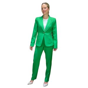 - Falda en punto frío negra recta y entallada, con una abertura lateral que aporta movimiento y un toque sensual.