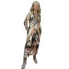 - Estampado sobre tul en tonos beige, negro y blanco, con un diseño tipo animal print o abstracto.