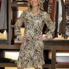 Vestido de gasa con estampado de animal print. Corte recto vaporoso con volante en puños y bajo. Escote redondo con lazo incorpaorado. Con forro.
